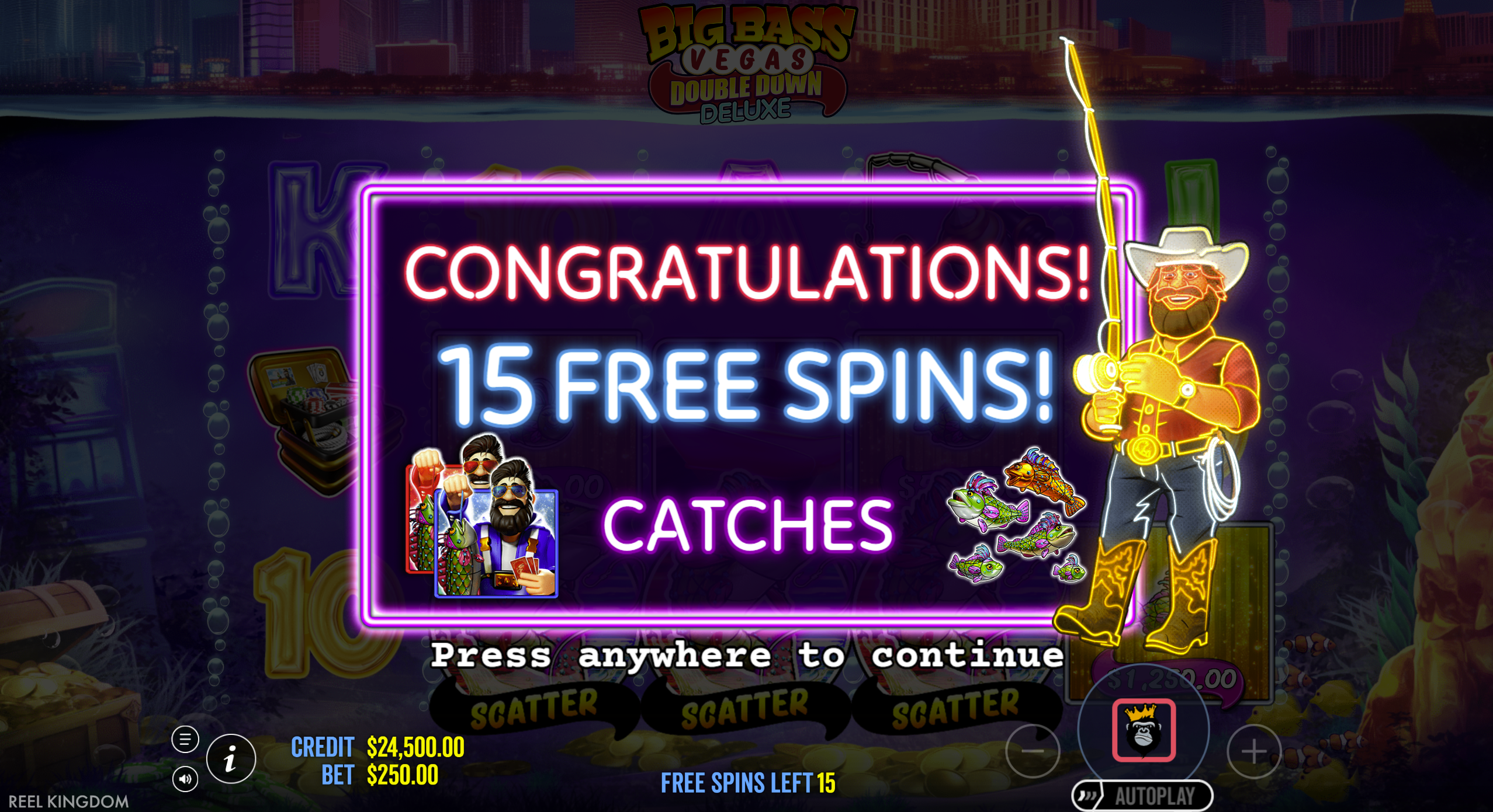 • Sticky Fisherman Guarantee: Fisherman Wild remains on reel 5 throughout free spins for automatic collections.